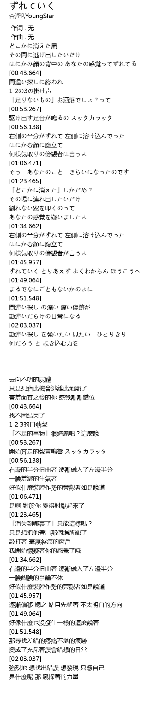 | [01:48.550] | ずれていく とりあえず よくわからん ほうこうへ |