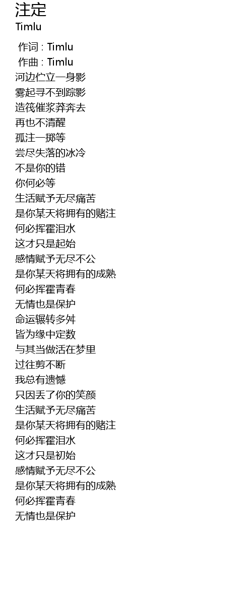 | [00:00.000] | 作词 : Timlu |