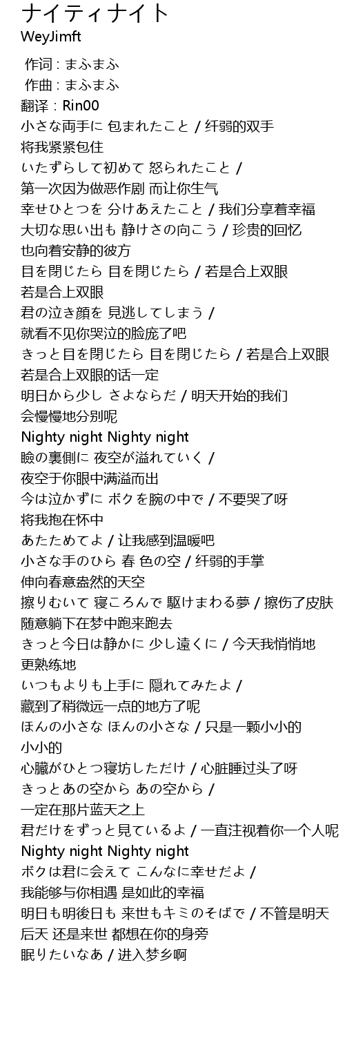 | [03:23.993] | 眠りたいなあ / 进入梦乡啊 |