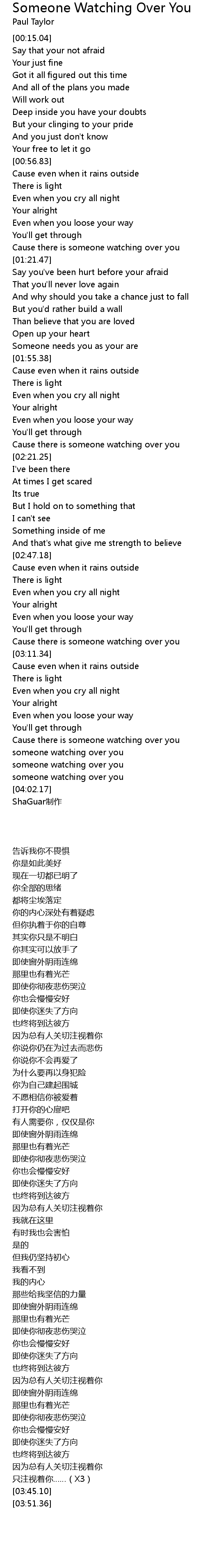 | [03:31.21] | Cause there is someone watching over you |