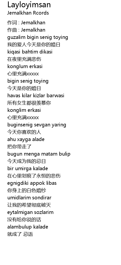 | 作词 : Jemalkhan | |