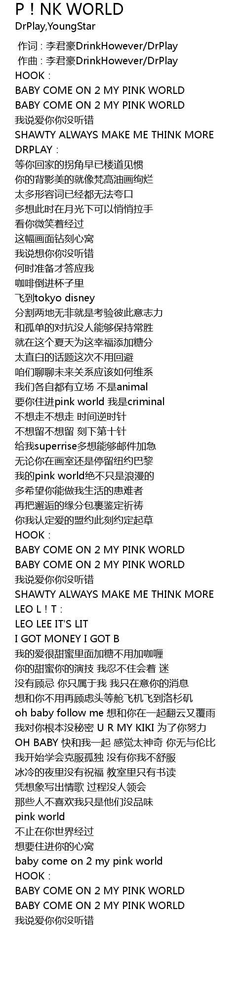 | [01:15.941] | 要你住进pink world 我是criminal |