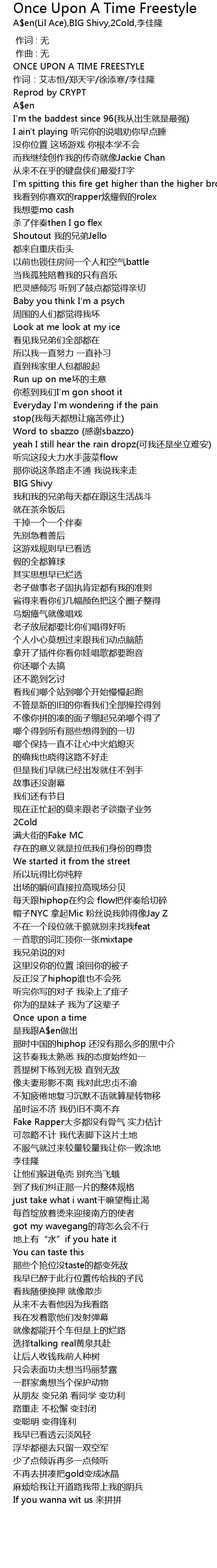 | [00:03.230] | ONCE UPON A TIME FREESTYLE |