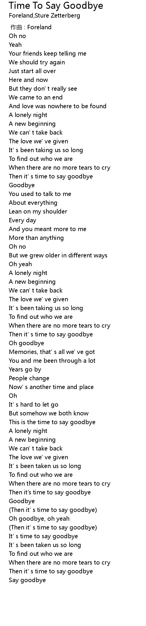 | [03:14.724] | Then it' s time to say goodbye |