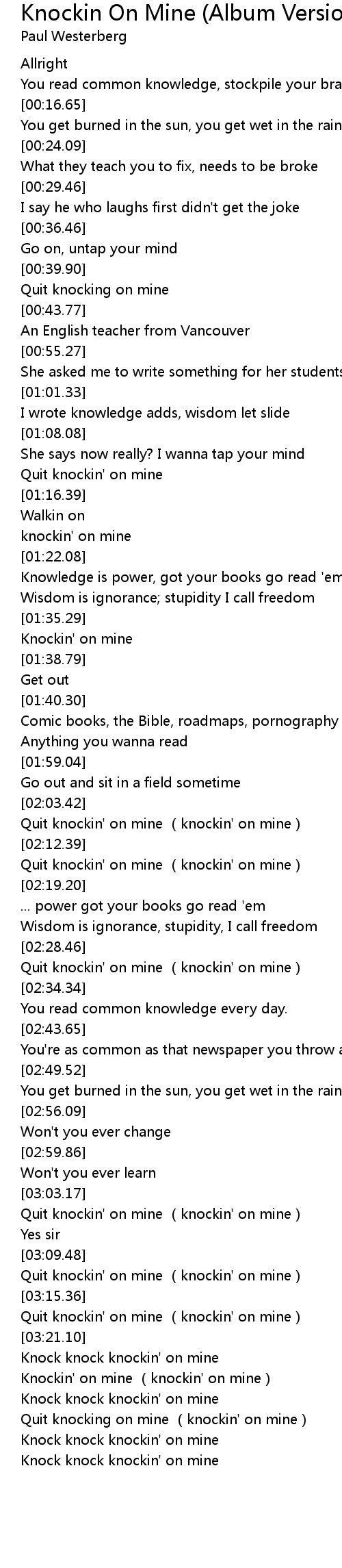 | [03:04.99] | Quit knockin' on mine knockin' on mine |