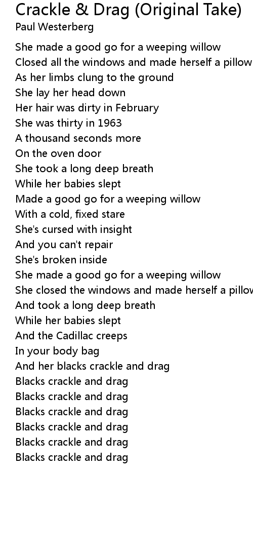And her blacks crackle and drag |
