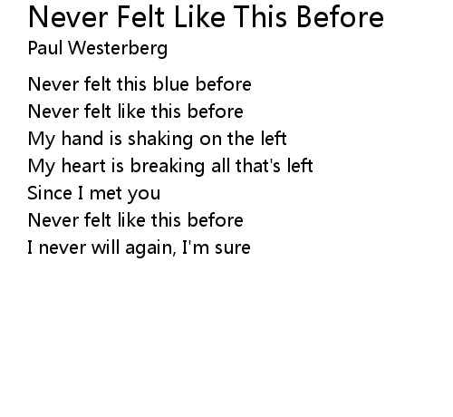 | Never felt like this before | |