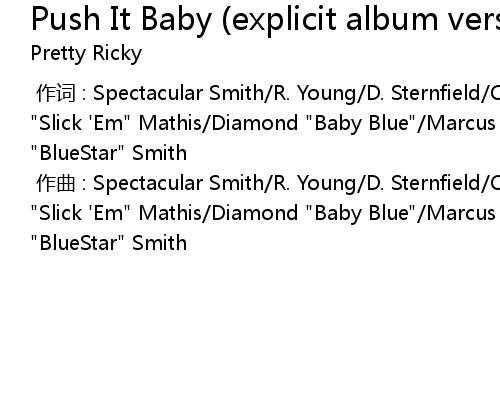 | [00:00.000] | 作曲 : Spectacular Smith/R. Young/D. Sternfield/C. Deveaux/Corey "Slick 'Em" Mathis/Diamond "Baby Blue"/Marcus "Pleasure P" Cooper/Joseph "BlueStar" Smith |