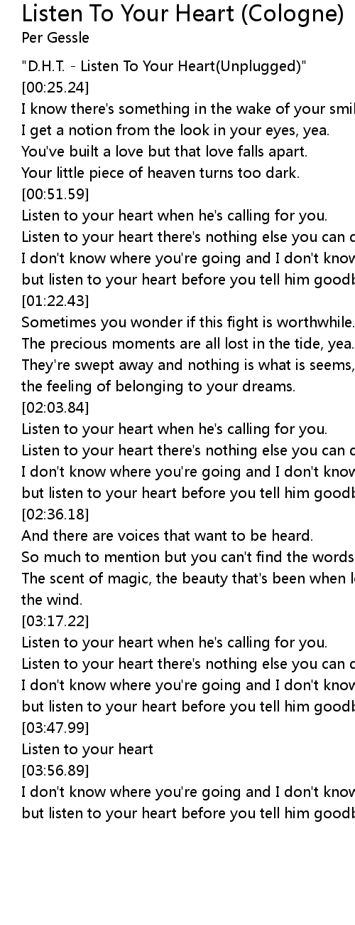 "D.H.T. - Listen To Your Heart(Unplugged)" |