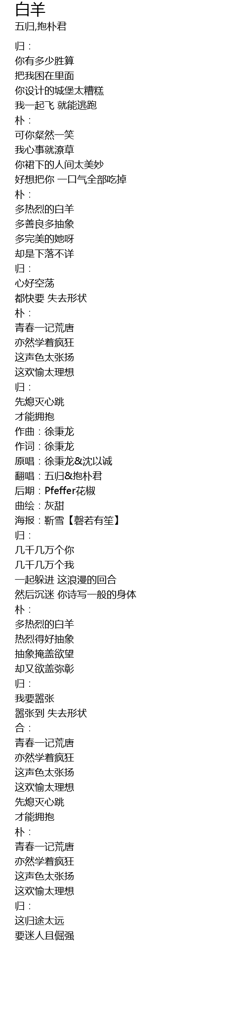 | [01:19.410] | 翻唱:五归&抱朴君 |