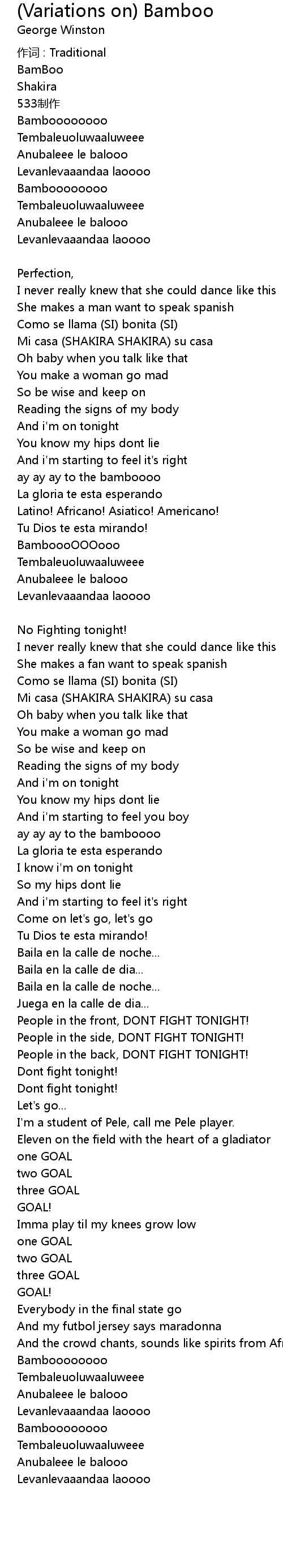 | Song | (Variations on) Bamboo |