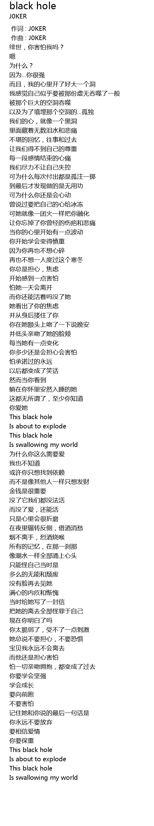 | [00:00.000] | 作词 : J0KER |
