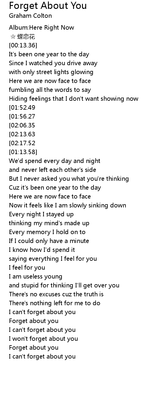 | [01:11.41][02:17.52] | I can' t forget about you |