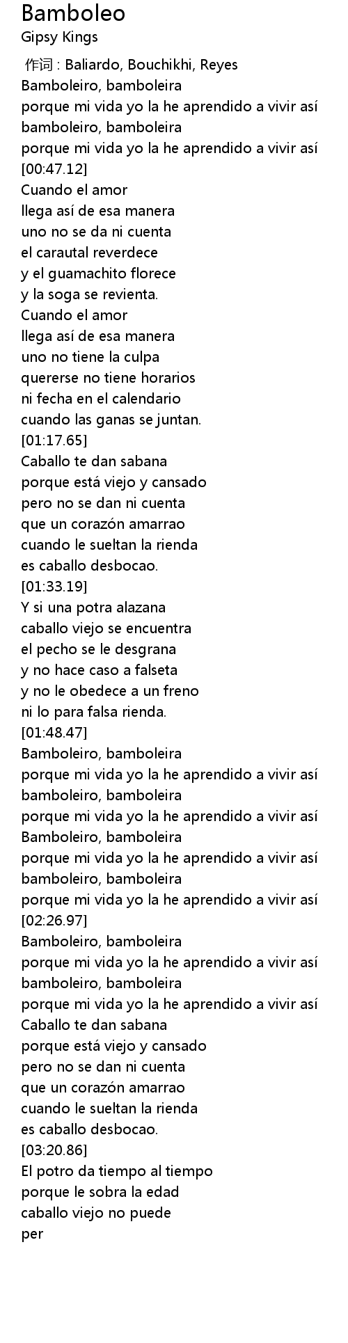 | [02:47.36] | Bamboleiro, bamboleira |