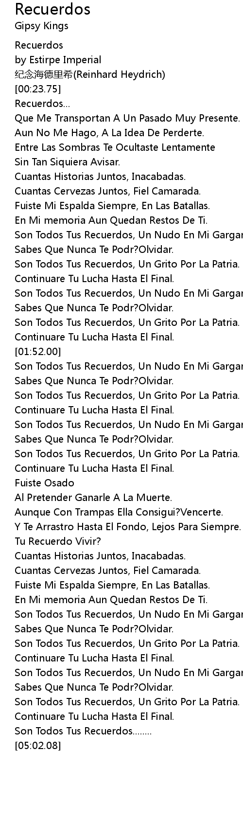 | [02:52.00] | Son Todos Tus Recuerdos, Un Grito Por La Patria. |