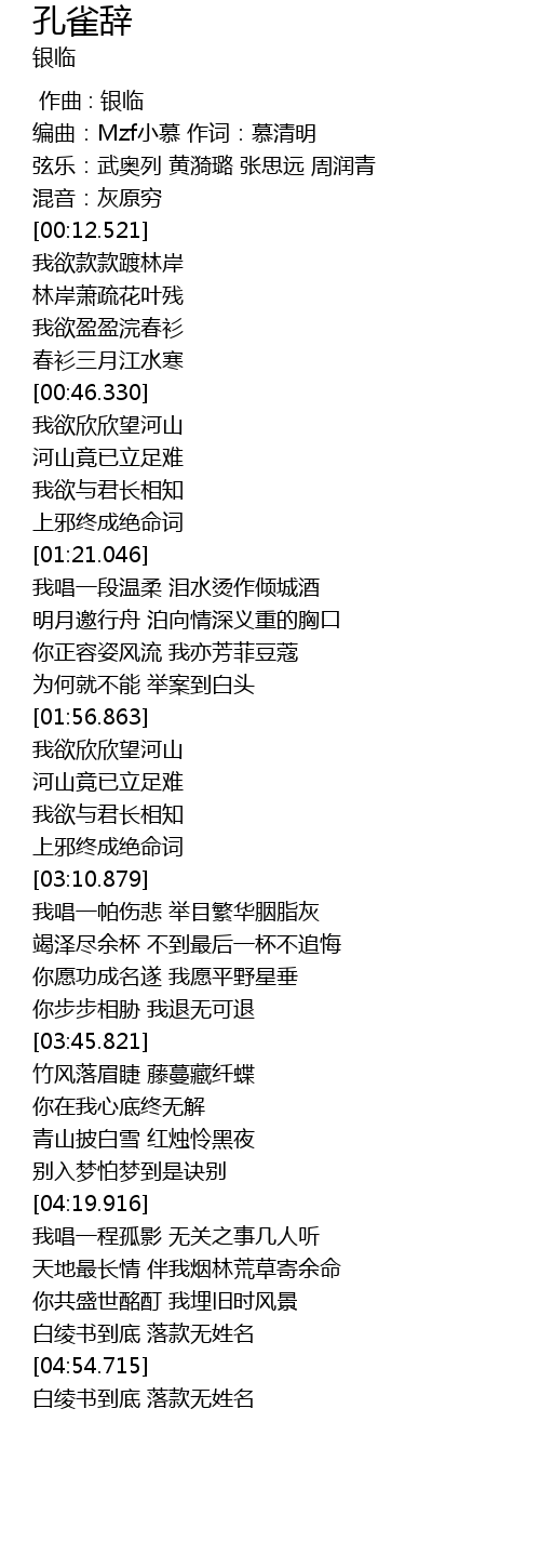 | [00:09.521] | biān qǔ: Mzf xiǎo mù zuò cí: mù qīng míng |