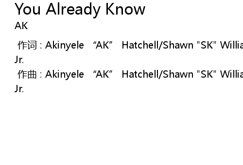 [00:00.000] 作曲 : Akinyele “AK” Hatchell/Shawn "SK" Williams/H. Frierson Jr.