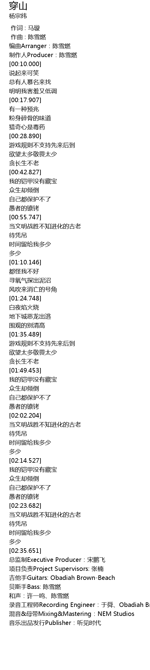 | [02:38.651] | 录音工程师Recording Engineer:于舜、Obadiah Brown-Beach |