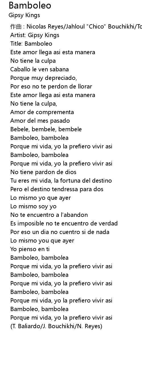 | [00:00.00] | 作曲 : Nicolas Reyes/Jahloul "Chico" Bouchikhi/Tonino Baliardo |