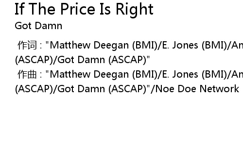 | [00:00.000] | 作词 : "Matthew Deegan (BMI)/E. Jones (BMI)/Anthony Lamar chavers (ASCAP)/Got Damn (ASCAP)" |
