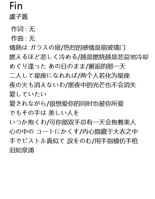 | [00:28.205] | 燃えるほど悲しく冷める/越是燃烧越是悲哀地冷却 |