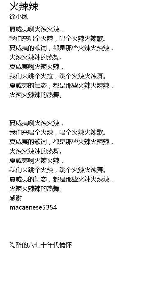 | 夏威夷的歌词,都是那些火辣火辣辣, | |