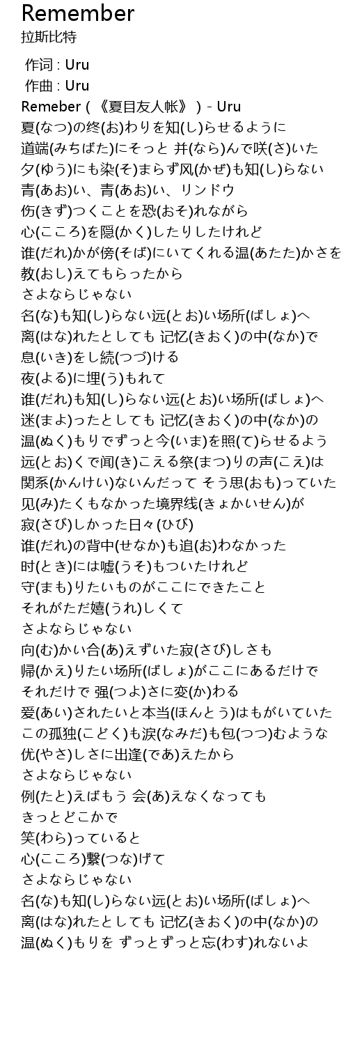 | [00:01.614] | Remeber(《夏目友人帐》)- Uru |