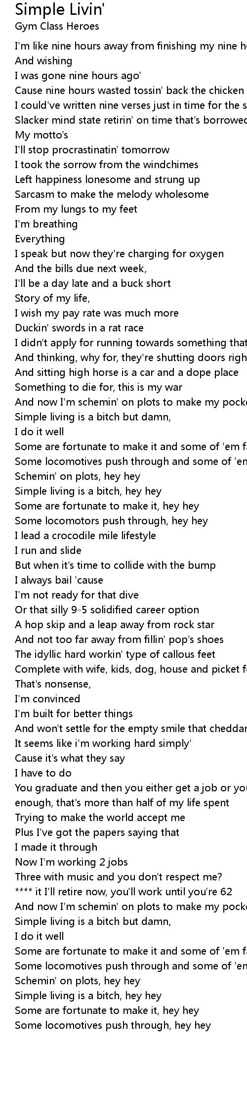 Simple living is a bitch, hey hey |
