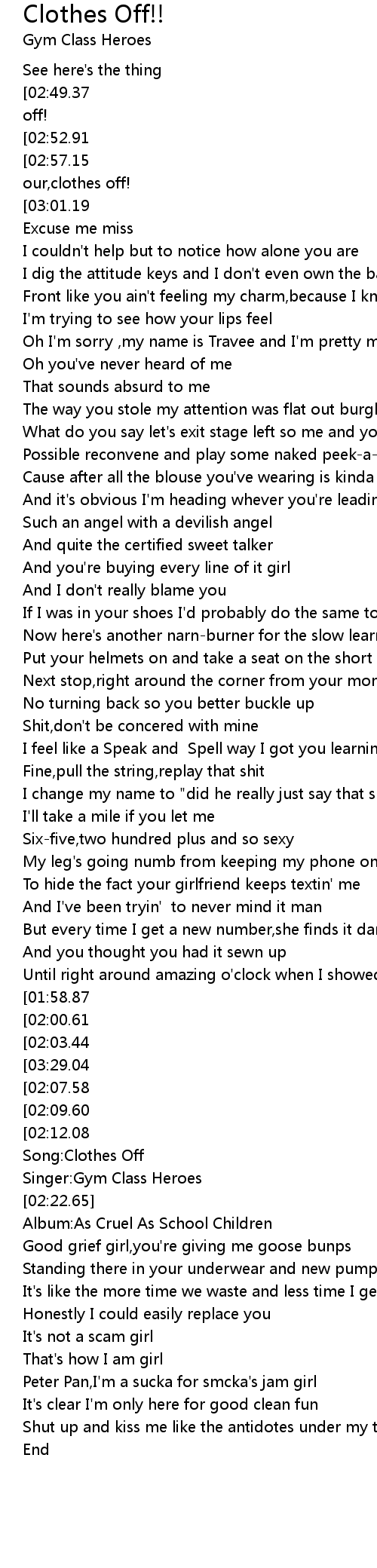 [02:16.50] Song:Clothes Off