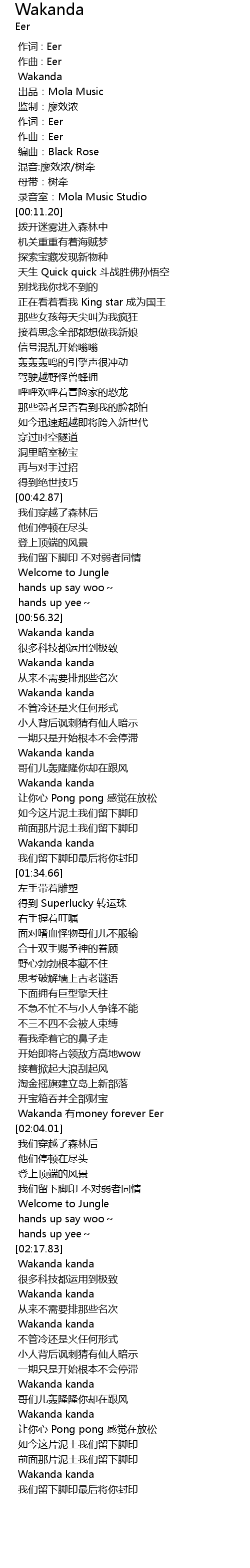 | [02:02.61] | Wakanda 有money forever Eer |