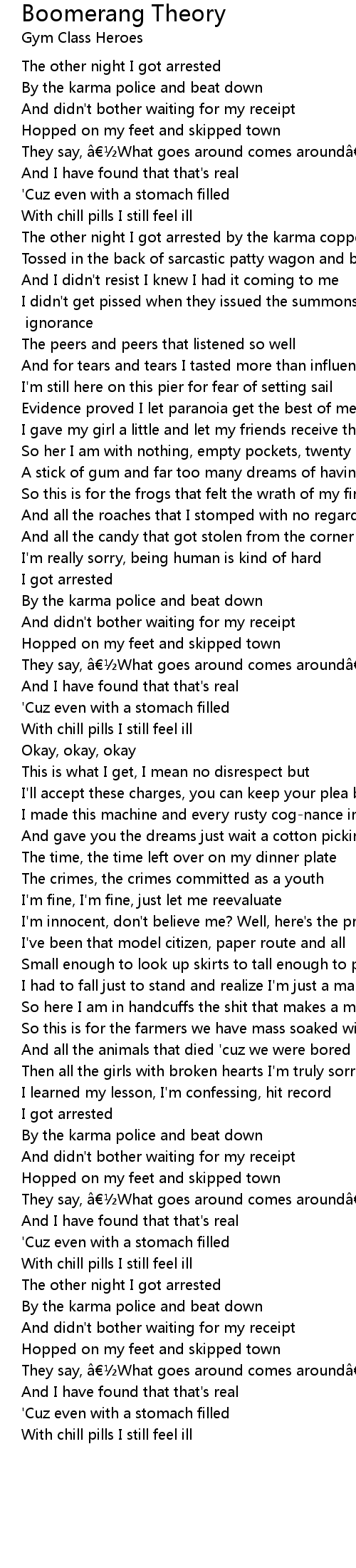 | The other night I got arrested by the karma coppers | |