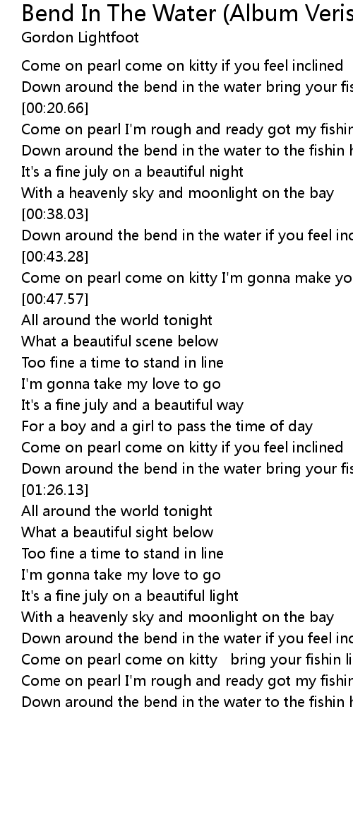 Down around the bend in the water bring your fishin line |