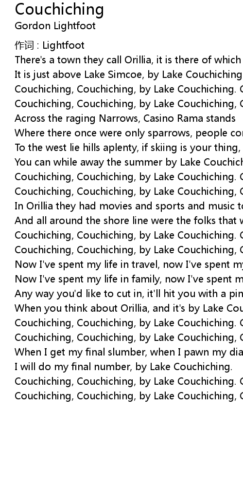 | Song | Couchiching |