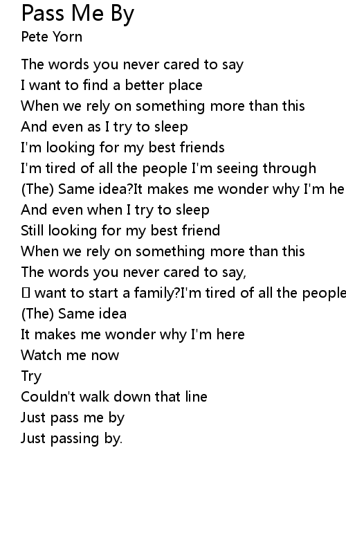 | Just pass me by | |