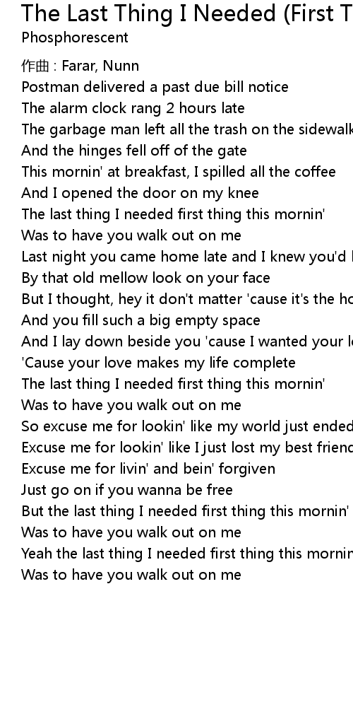 | Song | The Last Thing I Needed (First Thing This Morning) |