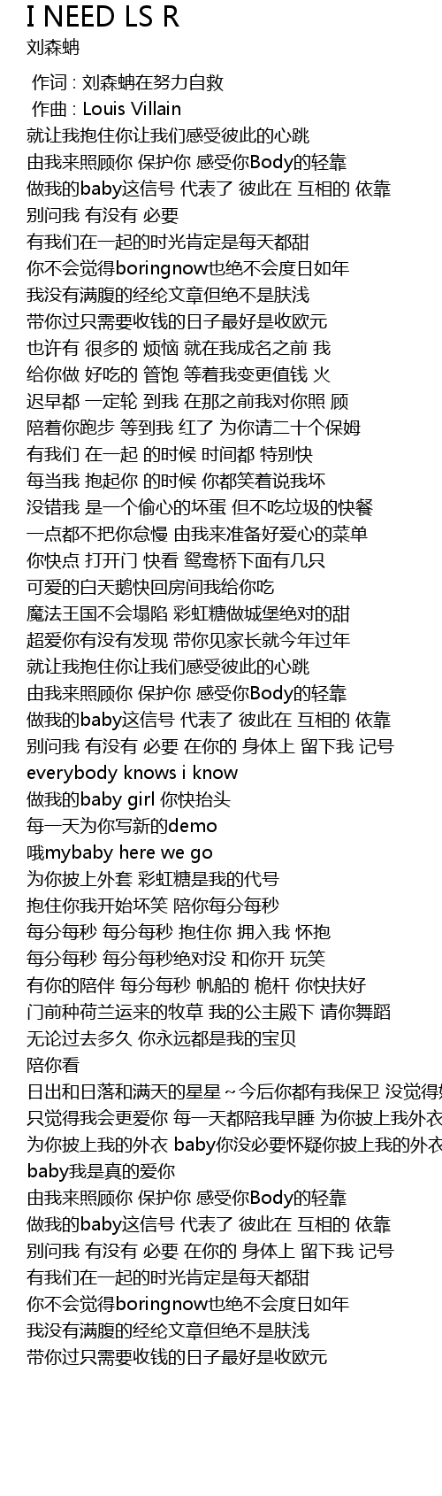 | [01:47.695] | 做我的baby girl 你快抬头 |