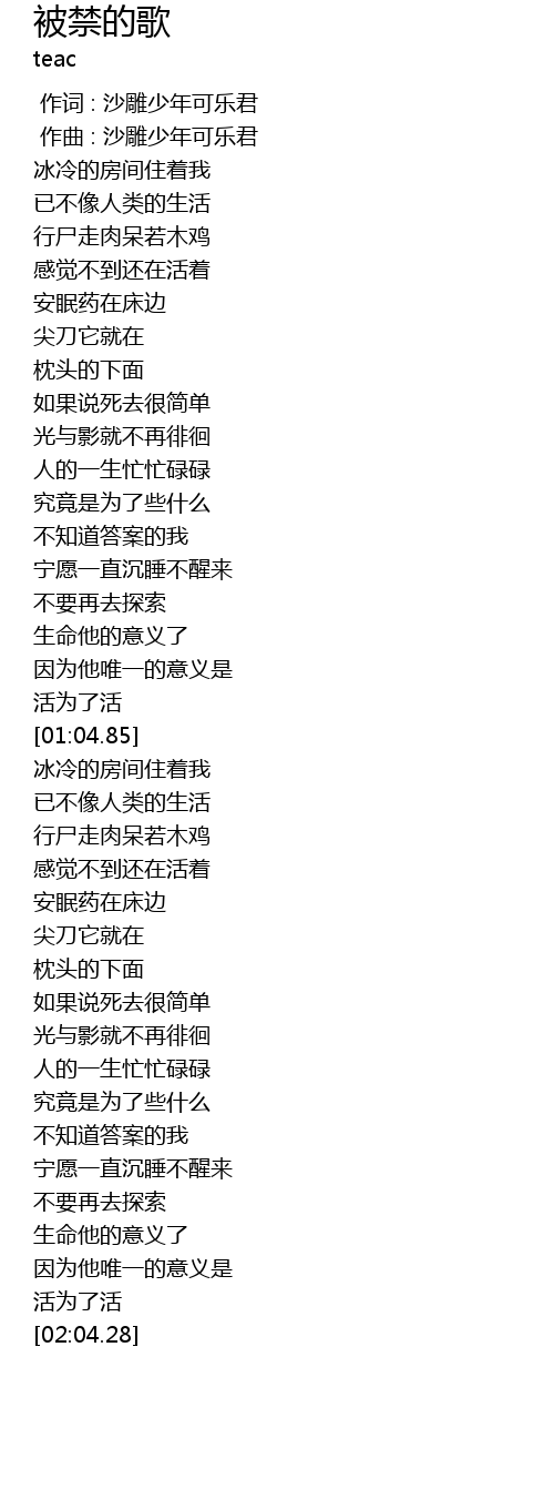 | [00:01.000] | zuò qǔ : shā diāo shào nián kě lè jūn |