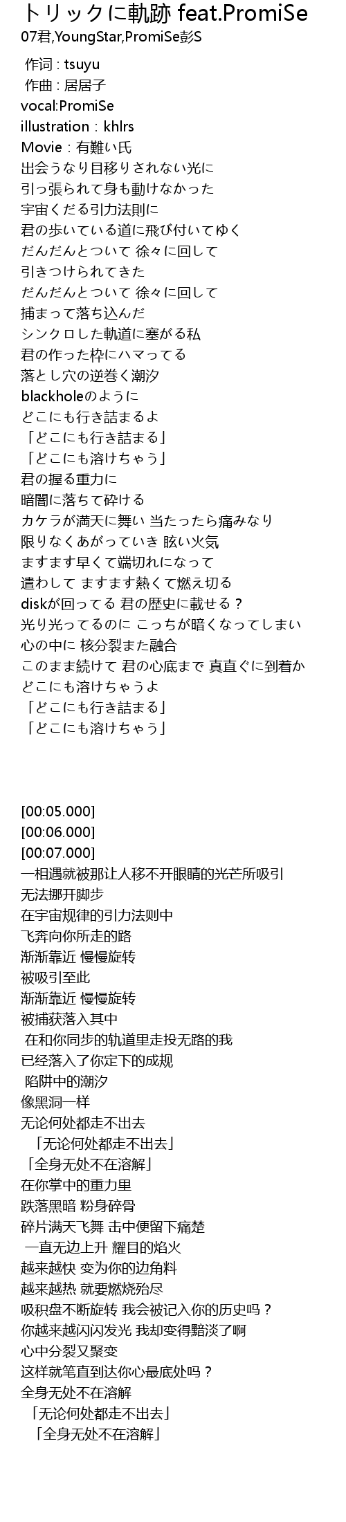 | [01:01.361] | シンクロした軌道に塞がる私 |