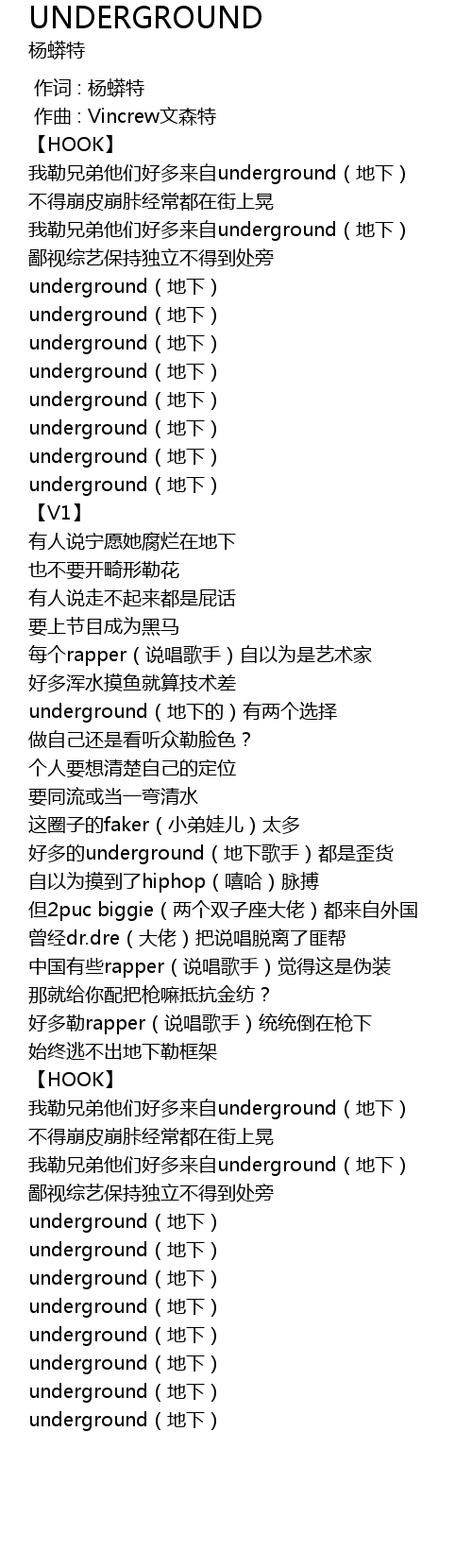 | [01:36.613] | 我勒兄弟他们好多来自underground(地下) |