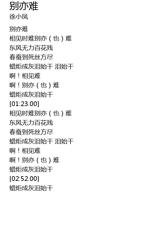 | [01:49.00] | 相见时难别亦(也)难 |