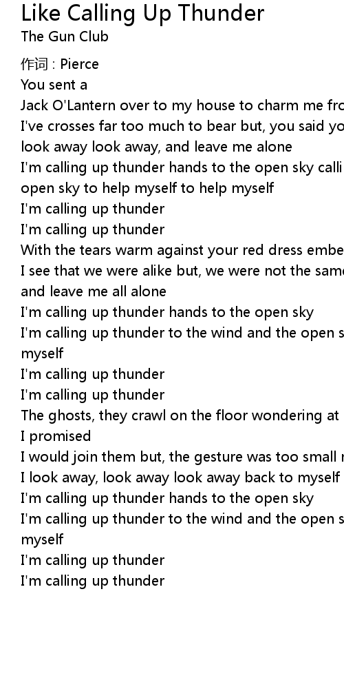| I' m calling up thunder hands to the open sky calling up thunder to the wind and open sky to help myself to help myself | |