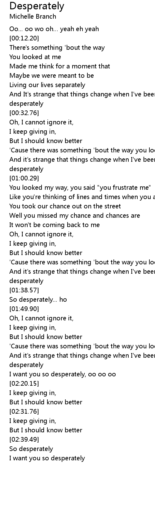 | [00:52.55] | And it's strange that things change when I've been wanting you so desperately |