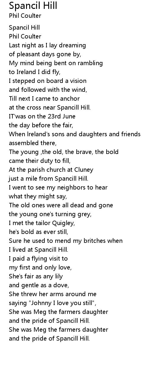 and the pride of Spancill Hill. |