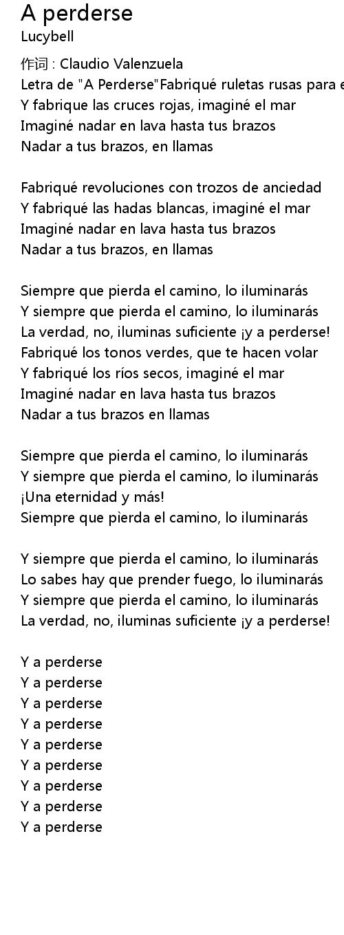 | Letra de " A Perderse" Fabrique ruletas rusas para estar en paz | |