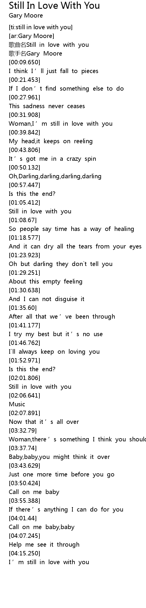 | [04:16.92] | I ' m still in love with you |