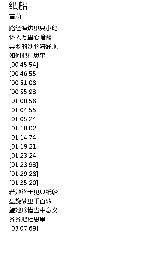 | [01:42.62][00:46.55] | shí qǐ zhāng zhǐ zhé zhǐ xiǎo chuán |