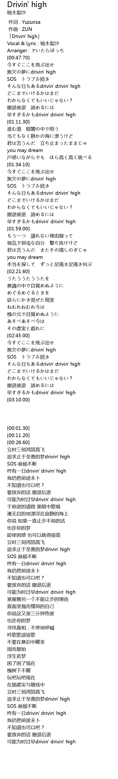 | [00:01.30] | 「Drivin' high」 |