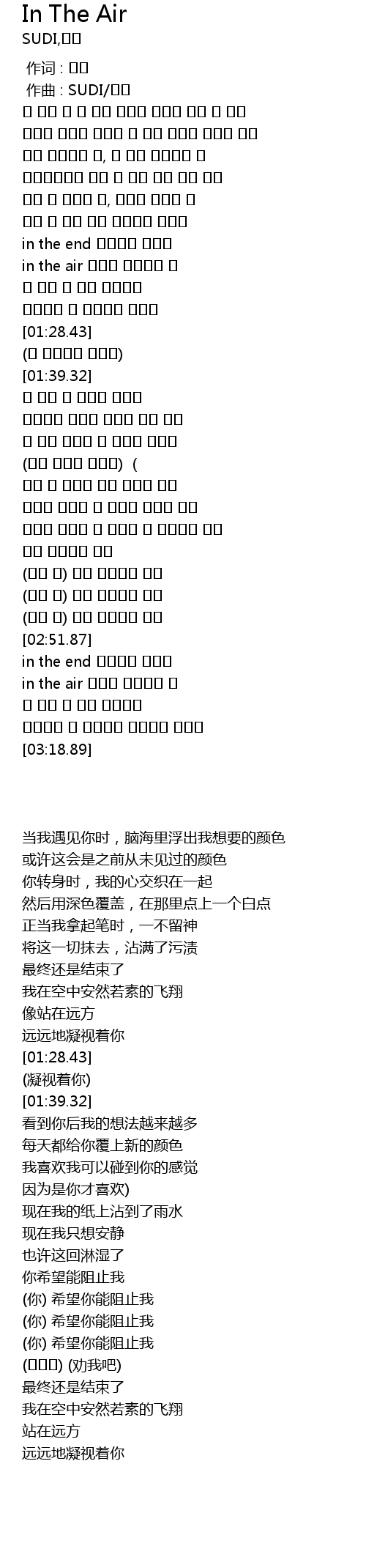 | [03:00.12] | in the air 하늘을 나는데도 난 |