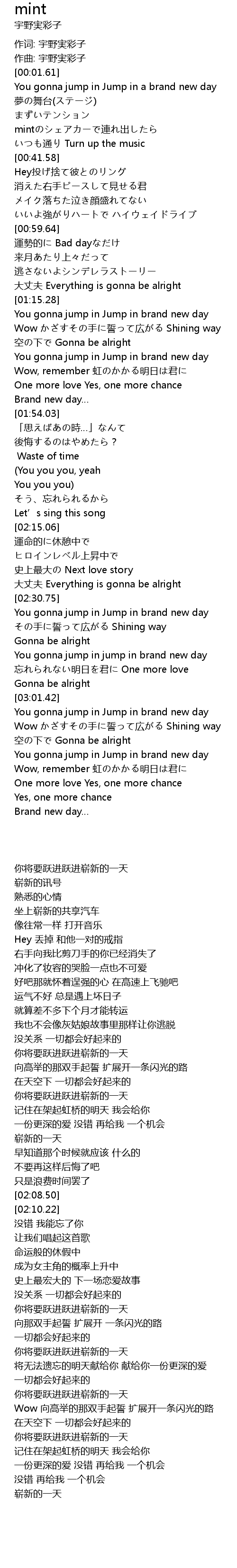 | [02:32.19] | You gonna jump in Jump in brand new day |