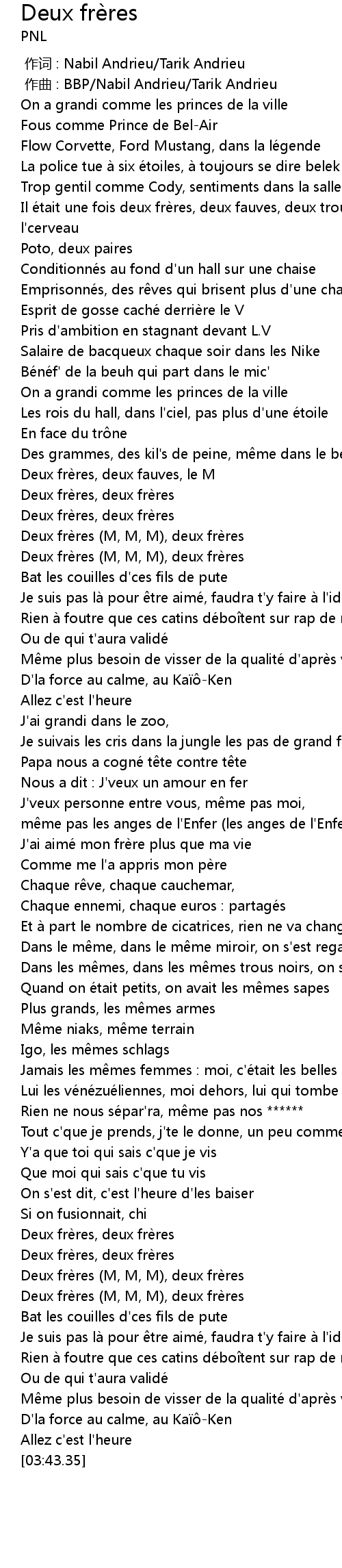 | [01:33.69] | Deux frères (M, M, M), deux frères |
